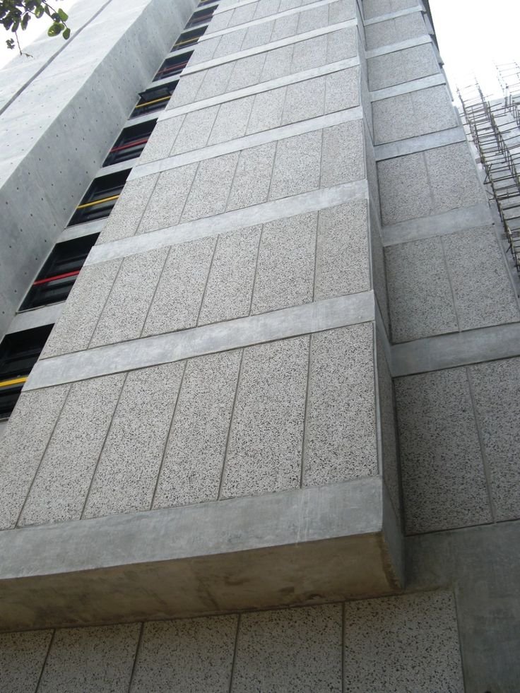 Stonecrete is a cementitious decorative material for walls with a thickness of 8-12mm by using different colours of aggregates.